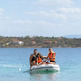 Łódź składa się z 3 komór ułożonych w kształcie litery U, solidnej podłogi wykonanej w technologii Drop Stitch Light oraz tylnej ściany do montażu mocnego silnika. Ponton jest lekki, wytrzymały oraz bardzo przestronny. Zmieścim tam cały nasz sprzęt nawet na dłuższe wyprawy. Idealny towarzysz naszych wodnych przygód.